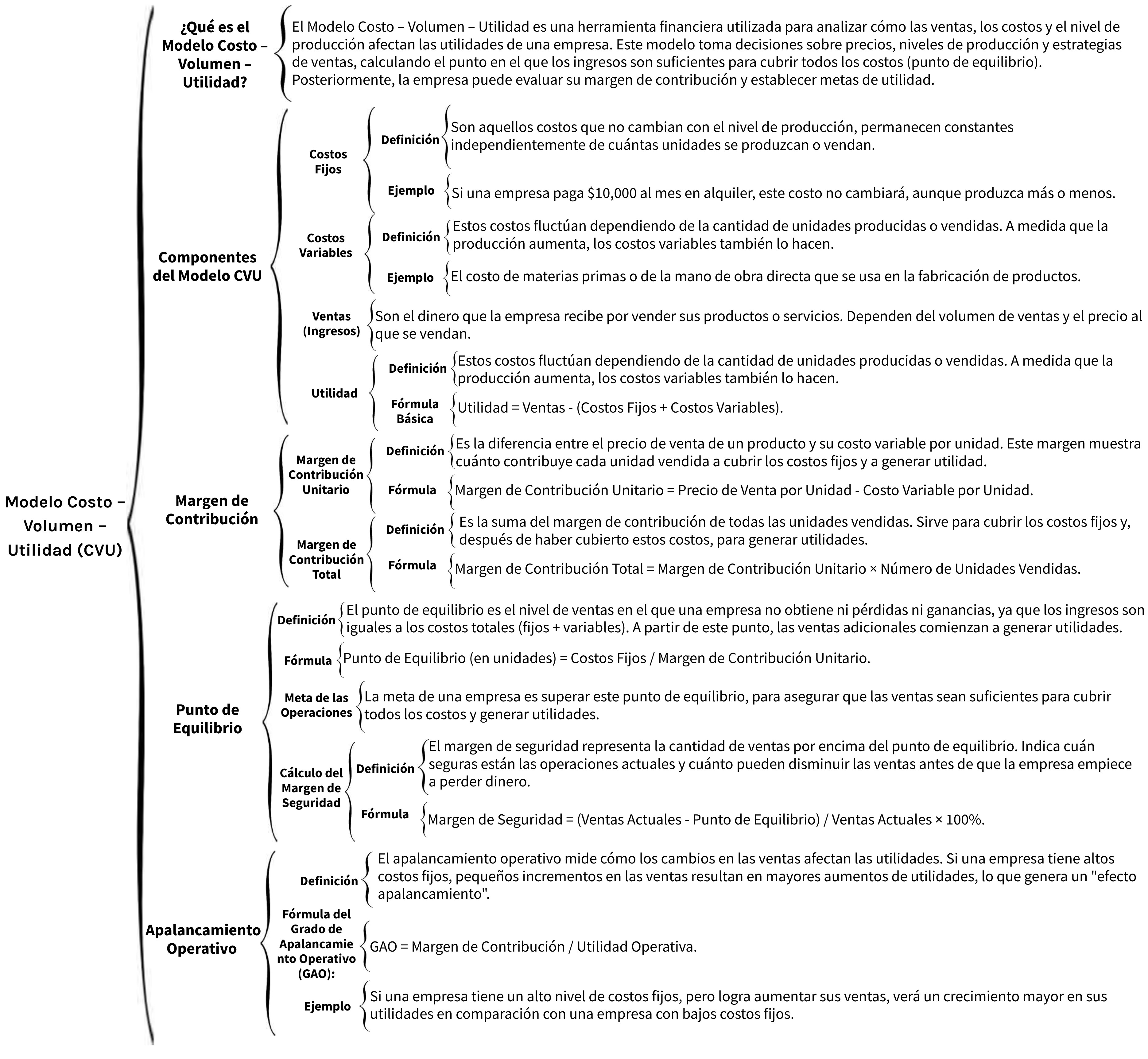 El Modelo Costo – Volumen – Utilidad es una herramienta financiera utilizada para analizar cómo las ventas, los costos y el nivel de producción afectan las utilidades de una empresa. Este modelo toma decisiones sobre precios, niveles de producción y estrategias de ventas, calculando el punto en el que los ingresos son suficientes para cubrir todos los costos (punto de equilibrio). Posteriormente, la empresa puede evaluar su margen de contribución y establecer metas de utilidad.