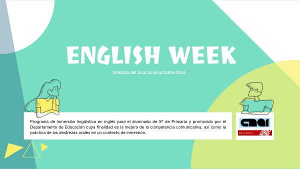 Programa de inmersión lingüística en inglés para el alumnado de 5º de Primaria y promovido por el Departamento de Educación cuya finalidad es la mejora de la competencia comunicativa, así como la práctica de las destrezas orales en un contexto de inmersión.