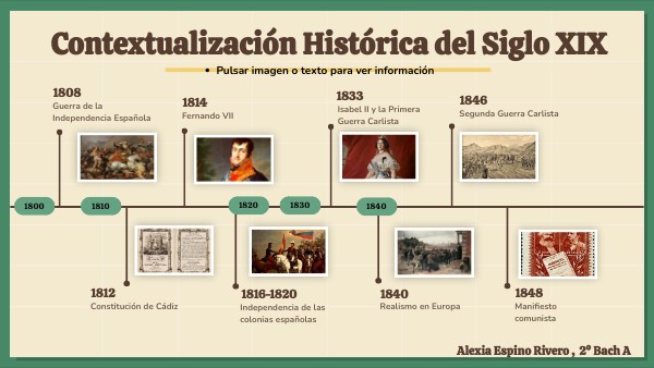 Comienza el periodo conocido como Sexenio Revolucionario (1868-1874) en España tras el triunfo de la revolución la Gloriosa en 1868 que culmina en el exilio de la reina Isabel II. El naturalismo es un movimiento literario y artístico muy ligado al realismo pues ambos se centran en representar la realidad de forma objetiva. Sin embargo, se diferencian entre sí porque mientras el realismo le da más importancia a la crítica social y la vida cotidiana, el naturalismo busca un enfoque biológico y fisiológico en el comportamiento humano y hace uso de teorías científicas. Además, el realismo se centra en la burguesía, mientras que el naturalismo lo hace en la clase obrera. Una de sus características es el determinismo, es decir, que el comportamiento humano está influenciado por la herencia genética y su entorno social. 1868 es el año considerando inicio del naturalismo literario en Europa por la publicación de “Thérèse Raquin” escrita por Émile Zola, pues este autor es conocido por ser el creador del naturalismo literario. La obra trata sobre la historia de Thérèse, una chica infelizmente casada.