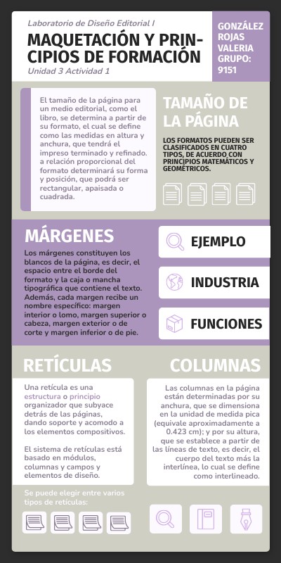 Una retícula es una estructura o principio organizador que subyace detrás de las páginas, dando soporte y acomodo a los elementos compositivos. El sistema de retículas está basado en módulos, columnas y campos y elementos de diseño. Se puede elegir entre varios tipos de retículas: