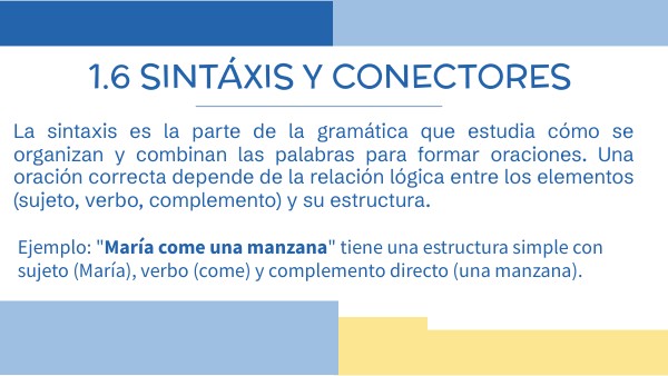 La sintaxis es la parte de la gramática que estudia cómo se organizan y combinan las palabras para formar oraciones. Una oración correcta depende de la relación lógica entre los elementos (sujeto, verbo, complemento) y su estructura.