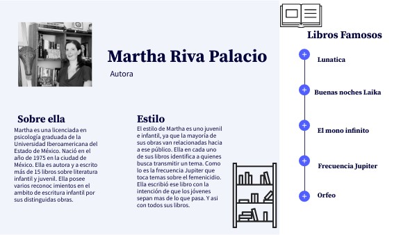 Fundación Cuatrogatos. (2020, June 4). Martha Riva Palacio Obón. Habitar sueños de otros. https://cuatrogatos.org/blog/?p=7260 Lisbeth Mejía Reyes. (2023, October 22). En mi narrativa hay algo de esperanza El Imparcial de Oaxaca. https://imparcialoaxaca.mx/oaxaca/811669/martha-riva-palacio-en-mi-narrativa-hay-algo-de-esperanza/