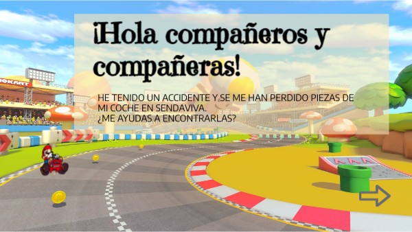 CADA UNO TENDRÉIS VUESTRO COCHE Y REALIZARÉIS EL MISMO RECORRIDO QUE YO. IRÉIS ENCONTRANDO LAS PARTES que esconden minipremios que seguro os van a encantar y... ...CUANDO TENGAMOS EL COCHE COMPLETO... ¡CONSEGUIRÉIS UN PREMIO MUY ESPECIAL!¿Qué tenemos que hacer para que nuestro coche avance?