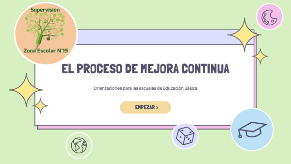 El presente documento tiene el propósito de orientar a las escuelas de educación básica en el desarrollo de su Proceso de Mejora Continua que contribuya a garantizar que todas las niñas, niños y adolescentes participen de una educación que promueva el pensamiento crítico y desarrollo integral, además que favorezca el vínculo con su comunidad. El primer capítulo describe qué es la Mejora Continua y las características del Proceso de Mejora Continua. En el segundo se desarrollan las fases de este Proceso, diagnóstico socioeducativo, planeación, seguimiento y evaluación y comunicación de avances y logros. Esperamos que este documento les ofrezca un marco general para impulsar sus procesos de mejora continua.