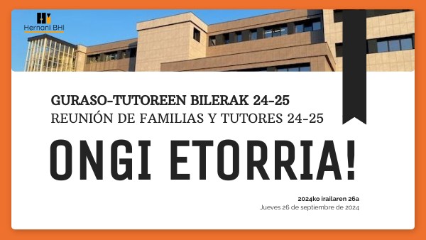 GURASO-TUTOREEN BILERAK 24-25 REUNIÓN DE FAMILIAS Y TUTORES 24-25