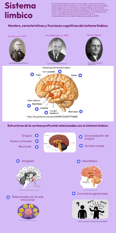 En el sistema límbico están involucradas varias estructuras y redes neuronales, teniendo un rol en los aspectos emocionales relacionados con la motivación, el aprendizaje y la memoria (Leira, 2011). Determina la personalidad y en si lo que somos, así como el proceso de estímulos emocionales como, decisiones, juicios, manifestaciones y la comprensión de los comportamientos sociales (Valenzuela y Salas, 2015).