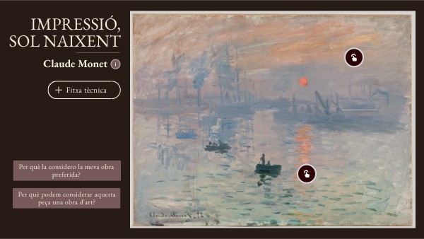 “Impressió, sol naixent” de Monet és la meva obra d’art preferida perquè em transmet calma i em fa sentir present en el moment. M'agrada la manera com Monet pinta sense voler ser perfecte tècnicament, simplement captant la llum d’un instant concret, i com unes pinzellades aparentment senzilles poden transmetre tanta tranquil·litat. Aquesta pintura em recorda que l’art no ha de ser complicat per arribar a transmetre emocions, la qual cosa fa que aquesta obra sigui la meva preferida.