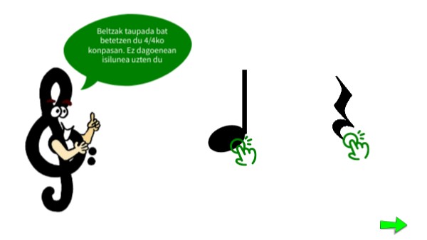 4 Azpiko gezian sakatu erritmoak entzuteko. Ondoren, zati zuzena aukeratu: