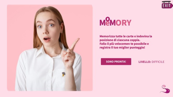 Memorizza tutte le carte e indovina la posizione di ciascuna coppia. Fallo il più velocemen te possibile e registra il tuo miglior punteggio!