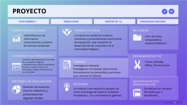 Los alumnos realizaran tripticos, cartulinas y presentaciones electronicas de exposición, que muestren el desarrollo de las costumbre en la comunidad indigena.