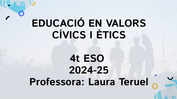 EDUCACIÓ EN VALORS CÍVICS I ÈTICS 4t ESO 2024-25 Professora: Laura Teruel