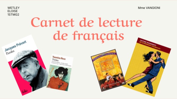J'ai choisis Les paroles de Jacques Prévert qui est un receuil de poèmes l'oeuvre est parut en 1946. Dans cette oeuvre il parle avec un language plutôt familiale, il est proche de la conversation même. Ce receuil émet une opposition entre l'amour et le détachement. La figure emblématique de ce receuil est l'oiseau car il sens de liberté comme un enfant innocent bonheur libre désinteréssé et non dirigé par la vie "sérieuse".