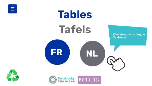 Deze tafels werden gemaakt bij een wedstrijd die gewonnen werd door R2use na een aanbesteding van het Construcity brussels. Ze zijn gemaakt met meerdere hergebruikte materialen, waaronder verzaagd en gelijmd constructiehout, oude verwarmingsbuizen en betonplex. Al die materialen zijn te vinden op bouwwerven en belanden vaak bij het afval. Meer info over deze wedstrijd: En het project Reuse:
