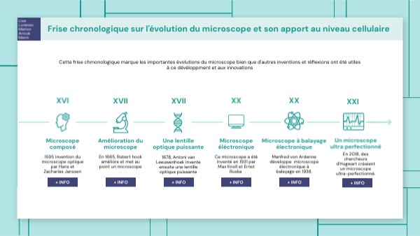 Frise chronologique sur l'évolution du microscope et son apport au niveau cellulaire