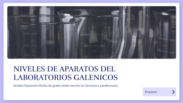 Navarrete Muñoz, Ariadna. Niveles de aparatos del laboratorio galenico