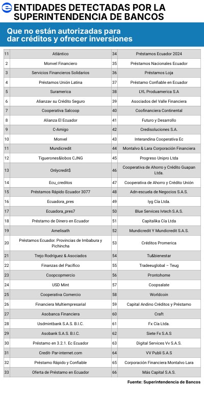 Entidades detectadas por la Superintendencia de Bancos