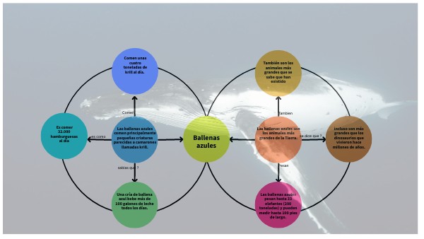 Me fue un poco complicado adquirir la información desde el artículo en inglés, pero pude identificar las ideas principales del mismo a través de las técnicas de lectura, lo que se me complico es utilizar la aplicación para realizar la diagramación de la red semántica la cual realicé en 2 páginas en un diagrama de círculos con oraciones que son ideas principales del contenido del texto BLUE –WHALES.