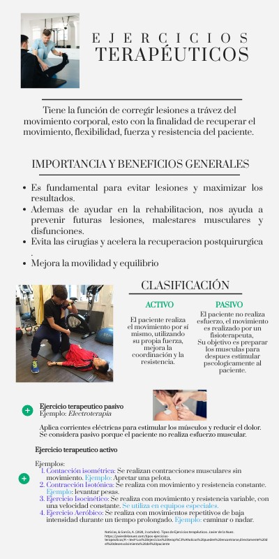 Noticias, & García, A. (2020, 3 octubre). Tipos de Ejercicios terapéuticos. Javier de la Nuez. https://javierdelanuez.com/tipos-ejercicios-terapeuticos/#:~:text=Los%20ejercicios%20terap%C3%A9uticos%20pueden%20encontrarse,directamente%20del%20desenvolvimiento%20del%20paciente