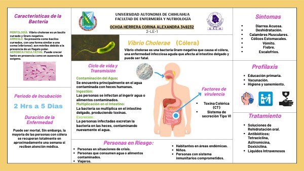 Contaminación del Agua: Se encuentra principalmente en el agua contaminada con heces humanas. Ingestión: Las personas se infectan al ingerir agua o alimentos contaminados. Multiplicación en el Intestino: La bacteria se multiplica en el intestino delgado, produciendo toxinas. Excreción: La personas infectadas excretan la bacteria en las heces, contaminando nuevamente el agua.