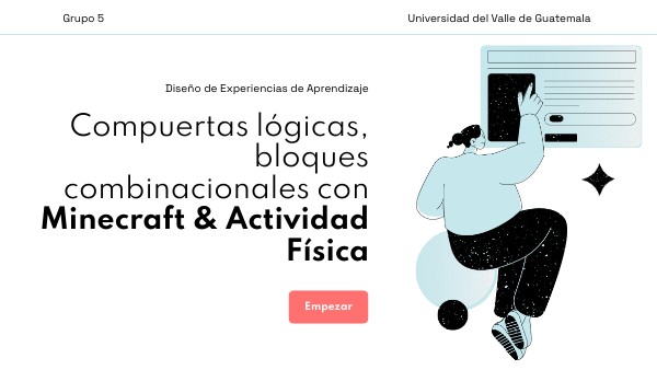 Gamificación La gamificación se utilizará como estrategia general para aumentar la motivación, el compromiso y la participación de los estudiantes. Se aplicarán elementos de juego a lo largo de toda la experiencia de aprendizaje. Aprendizaje Basado en Problemas (ABP) El ABP se centra en el proceso de resolver problemas complejos. En esta estrategia, los estudiantes trabajarán en grupos para resolver problemas específicos (retos y escenarios) con diseños de circuitos combinacionales. Deberán implementar sus diseños y soluciones con construcciones de bloques dentro del videojuego Minecraft.
