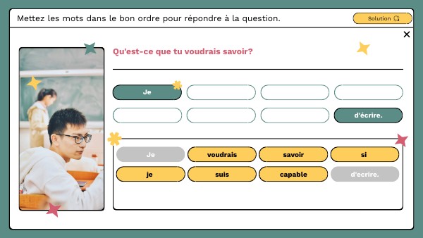 Mettez les mots dans le bon ordre pour répondre à la question.