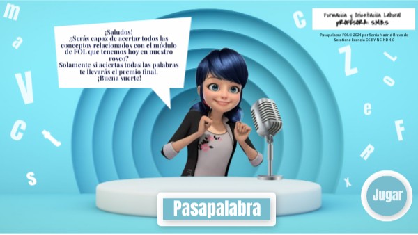 ¡Saludos!¿Serás capaz de acertar todos las conceptos relacionados con el módulo de FOL que tenemos hoy en nuestro rosco? Solamente si aciertas todas las palabras te llevarás el premio final. ¡Buena suerte!