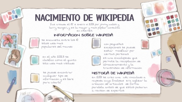 fue creada el 15 e enero d 2001 por jimmy wales y larry sanger, y es la mayor y mas popilar consulta en internet
