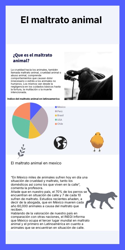 “En México miles de animales sufren hoy en día una situación de crueldad y maltrato, tanto los domésticos así como los que viven en la calle", comenta la profesora. Añade que en nuestro país, el 70% de los perros se encuentran en situación de calle y 7 de cada 10 sufren de maltrato. Estudios recientes añaden, a decir de la abogada, que en México mueren cada año 60,000 animales a causa del maltrato que reciben. Hablando de la valoración de nuestro país en comparación con otras naciones, el INEGI informa que México ocupa el tercer lugar mundial en maltrato animal y el primero en Latinoamérica en cuanto a animales que se encuentran en situación de calle.