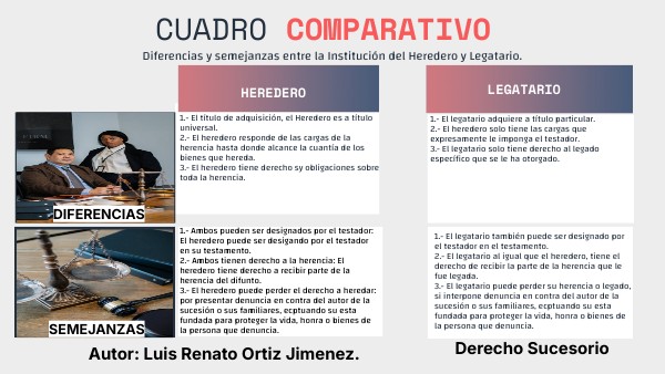 Diferencias y semejanzas entre la Institución del Heredero y Legatario.