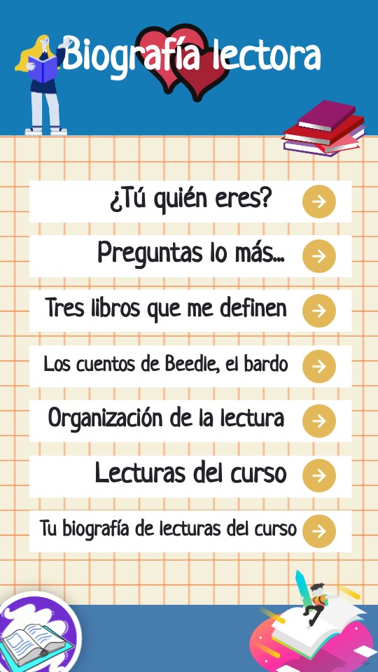 Con el material que hemos ido leyendo a lo largo de nuestra vida, o del curso, en Lengua y en otras asignaturas (cuentos, novelas, obras de teatro, etc.), ELABORARÁS TU PROPIA BIOGRAFÍA DE LECTURA! Te dejo como ejemplo mi propi abiografía.