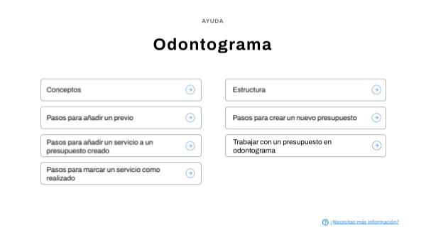 - Incluye un buscador de previos o servicios para añadir al odontograma en función del contexto seleccionado.