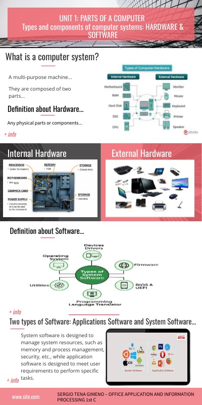 UNIT 1: PARTS OF A COMPUTER Types and components of computer systems: HARDWARE & SOFTWARE