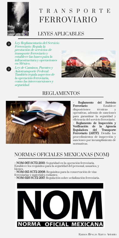 • Reglamento de Inspección y Verificación de la Agencia Reguladora del Transporte Ferroviario (ARTF): Detalla los procedimientos de inspección y sanciones por incumplimiento de normativas.