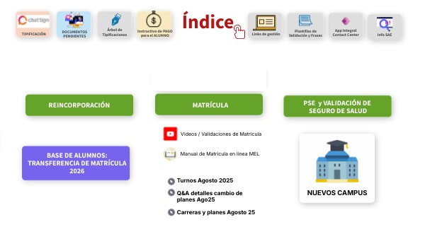 - Identifica qué tipo de alumno es, para indicar el proceso y canal correcto.