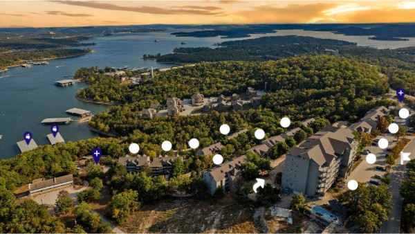 Red Oak 916 boasts one of the best views of Table Rock Lake! This spacious 1,403 sq. ft. condo features warm wood flooring and open-concept living spaces. The fully-equipped kitchen has sleek backsplash, stainless steel appliances, and plenty of counter space. Enjoy meals at the dining table, play board games, or simply take in the stunning lake views. Relax by the fireplace for movie night or read a book in the natural light. Upstairs, there's a lounge with an arcade game! Step out onto the private deck to soak in the fresh Ozarks air. Accessible via elevator, this unit is down two flights of stairs.