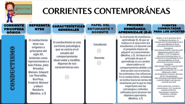 Medina, V. (s.f). Elementos de los Paradigmas Educativos. En Fundamentos Psicopedagógicos de la Educación [Módulo en línea]. Universidad virtual del Estado de Guanajuato. https://avalicmod19c.uveg.edu.mx/mod/page/view.php?id=14973Medina, V. (s.f). Paradigmas Educativos Contemporáneos. En Fundamentos Psicopedagógicos de la Educación [Módulo en línea]. Universidad virtual del Estado de Guanajuato. https://avalicmod19c.uveg.edu.mx/mod/scorm/player.php?a=6547¤torg=FPE_U1_L1_v02_ORG&scoid=14064Reátegui, G; Pasapera, R; Soplin, J; Vizcarra, A y Barba, L. (2022). Conductismo, Cognitivismo Constructivismo: sus aportes y las características del docente y estudiante. Revista de Investigación en Ciencias de la Educación. Vol. 4 (2), pp. 90-102. https://educas.com.pe/index.php/paidagogo/article/view/136