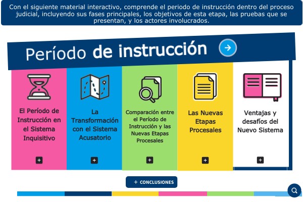 Con el siguiente material interactivo, comprende el periodo de instrucción dentro del proceso judicial, incluyendo sus fases principales, los objetivos de esta etapa, las pruebas que se presentan, y los actores involucrados.