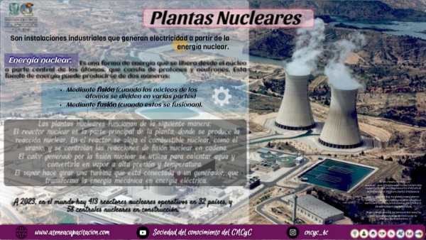 Son instalaciones industriales que generan electricidad a partir de la energía nuclear.