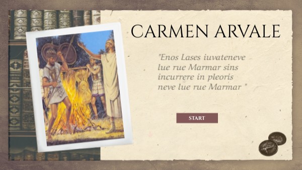 «enos Lases iuvate enos Lases iuvate enos Lases iuvate neve lue rue Marmar sins incurrere in pleoris neve lue rue Marmar sins incurrere in pleoris neve lue rue Marmar sins incurrere in pleoris satur fu, fere Mars, limen sali, sta berber satur fu, fere Mars, limen sali, sta berber satur fu, fere Mars, limen sali, sta berber semunis alterni advocapit conctos semunis alterni advocapit conctos semunis alterni advocapit conctos enos Marmor iuvato enos Marmor iuvato enos Marmor iuvato triumpe triumpe triumpe triumpe triumpe.»