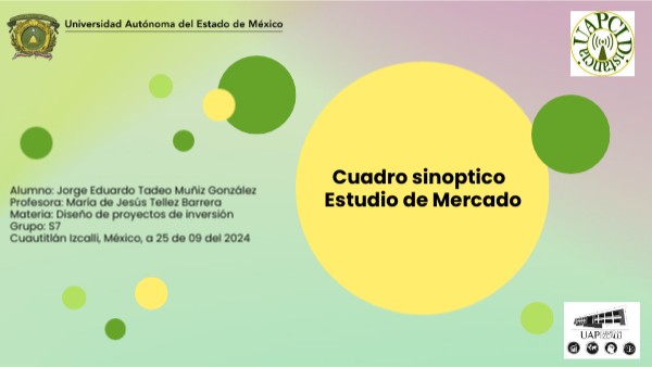 Alumno: Jorge Eduardo Tadeo Muñiz González Profesora: María de Jesús Tellez Barrera Materia: Diseño de proyectos de inversión Grupo: S7 Cuautitlán Izcalli, México, a 25 de 09 del 2024