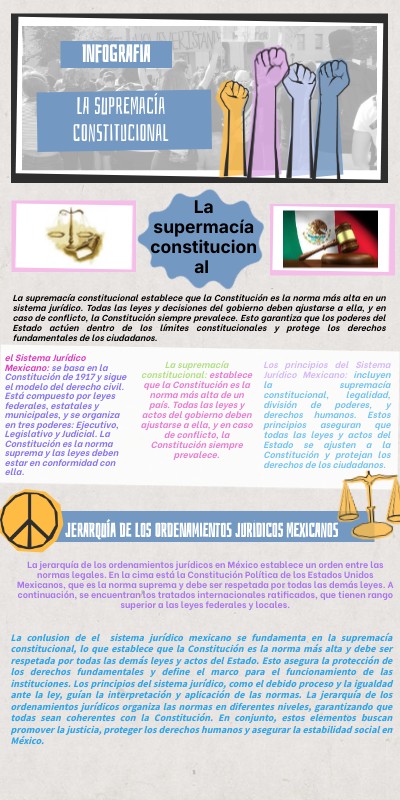 La conlusion de el sistema jurídico mexicano se fundamenta en la supremacía constitucional, lo que establece que la Constitución es la norma más alta y debe ser respetada por todas las demás leyes y actos del Estado. Esto asegura la protección de los derechos fundamentales y define el marco para el funcionamiento de las instituciones.