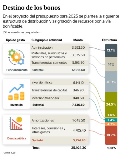 En el proyecto del presupuesto para 2025 se plantea la siguiente estructura de distribución y asignación de recursos por la vía bonificable.
