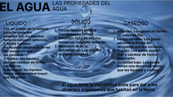 El agua tiene la viscosidad justa para dar a los diversos organismos que habitan en la tierra.