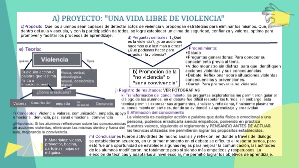 g)Hipotesis: Si los alumnos reflexionan sobre las concecuencias de acciones violentas, eliminaran las mismas dentro y fuera del aula, mejorando la convivencia.