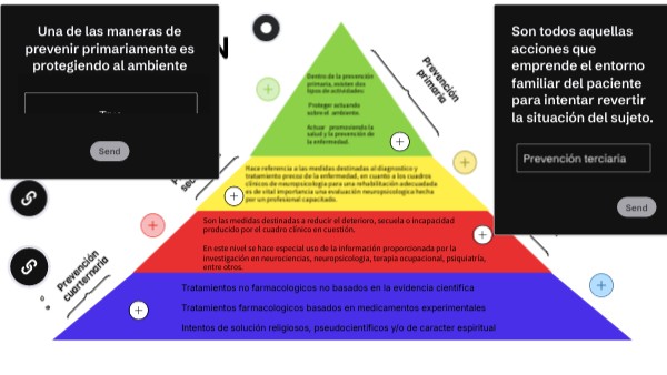 Descripción: Acciones que buscan minimizar las posibilidades de la emergencia de algún trastorno que implique alteraciones neuropsicologicas. Ejemplo: Investigación acerca del proceso de adquisición de estructuras cognoscitivas necesarias para un aprendizaje óptimo.