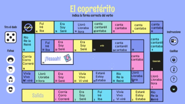 Partiendo desde la casilla de salida, tendréis que ir tirando el dado y respondiendo a todas las preguntas. Cuando la respuesta sea incorrecta, pasará vuestro turno y tendréis que pensarlo para más tarde. El equipo ganador será el que consiga llegar a la casilla de llegada. ¡Mucha suerte!