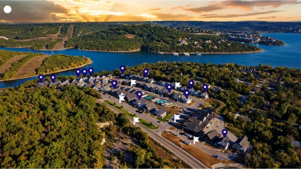 Absolutely Shore is the perfect vacation home that your family will want to return to year after year! This stunning new property features 8 bedrooms and 7 bathrooms, offering ample space for everyone. Enjoy a beautiful lake view and the convenience of a private golf cart. The living area is filled with natural light, and the expansive kitchen is perfect for delicious meals together. Step outside to a deck with a fireplace, seating, and a RecTeg grill. Upstairs, two master suites include a private deck and wet bar. The lower level is a kid’s paradise with arcade games, foosball, and a private hot tub with lake views. Branson Cove also offers a new walking path to Table Rock Lake, perfect for creating unforgettable memories!
