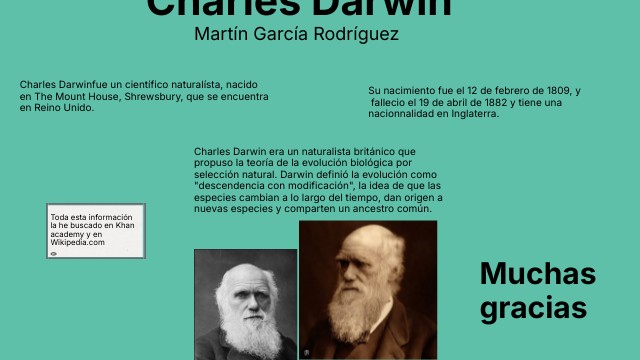 Charles Darwinfue un científico naturalísta, nacido en The Mount House, Shrewsbury, que se encuentra en Reino Unido.