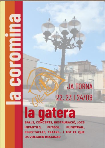 I ja en van 3 de Festes Majors, no hem perdut la il·lusió amb la qual vam començar, hem fet tornejos de futbol, Castanyades, Revetlles, fer cagar el tió... Sempre amb la mateixa intenció, mantenir la Coromina alegre, la Coromina desperta, la Coromina viva. En aquest temps hem viscut moments de tot i molta calor, hi ha hagut baixes a la Gatera i noves incorporacions, que ens han donat aire fresc i sobretot noves mans per ajudar i fer pinya. Aquest any tenim l'immens plaer de comptar amb un vell conegut de la Festa Major de la Coromina, el DRAC, oblidat durant molts anys, l'hem pogut recuperar i compartir amb veïns i veïnes i de cara l'any que ve esperem poder restaurar. (vegeu article d'en Joan). També hem invertit en les noves banderes del poble, i per això us demanem també que vosaltres la pengeu al balcó, perquè amb els carrers engalanats es veu una Coromina més alegre que és el nostre gran desig, una Coromina viva, una Coromina que somriu, una Coromina que batega!!! Visca La Coromina
