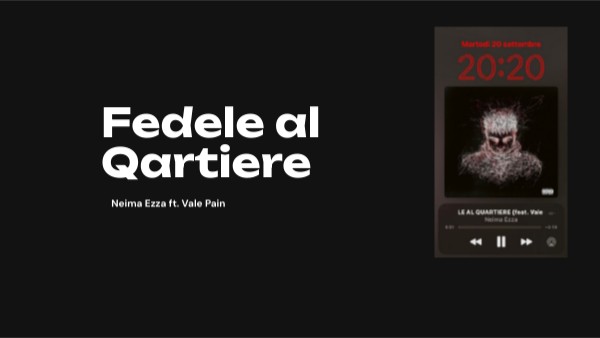 "FEDELE AL QUARTIERE" di Neima Ezza ft. Vale Pain è un brano che narra la lealtà al proprio quartiere nonostante le difficoltà e i tradimenti. Gli artisti reccontano le loro esperienze difficili cresciuti in un quartiere pericoloso, mantenendo un attaccamento alle radici e alle persone con cui sono cresciuti. Il ritornello "Resto fedele al quartiere" sottolinea questa fedeltà, nonostante le delusioni subite. I versi esprimono le dure realtà che hanno vissuto, segnandoli emotivamente. In definitiva, la canzone è un omaggio alle strade difficili che li hanno forgiati, nonostante le sfide, rimangono legati al loro quartiere e alle persone che li hanno influenzati.